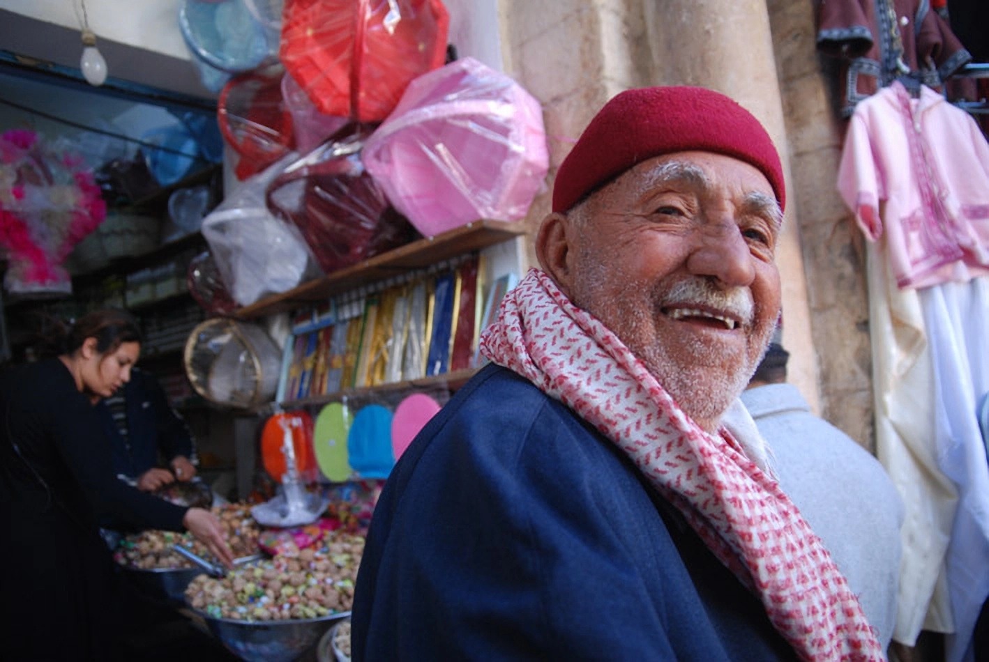 Сиди-Бу-Саид. Вещевой рынок. Торговец сувенирами.