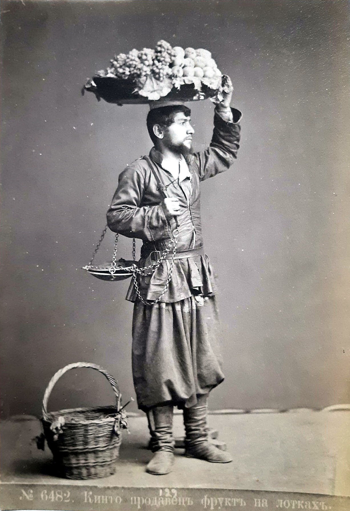 Кинто продавец фруктов на лотках. Тифлисская губерния.