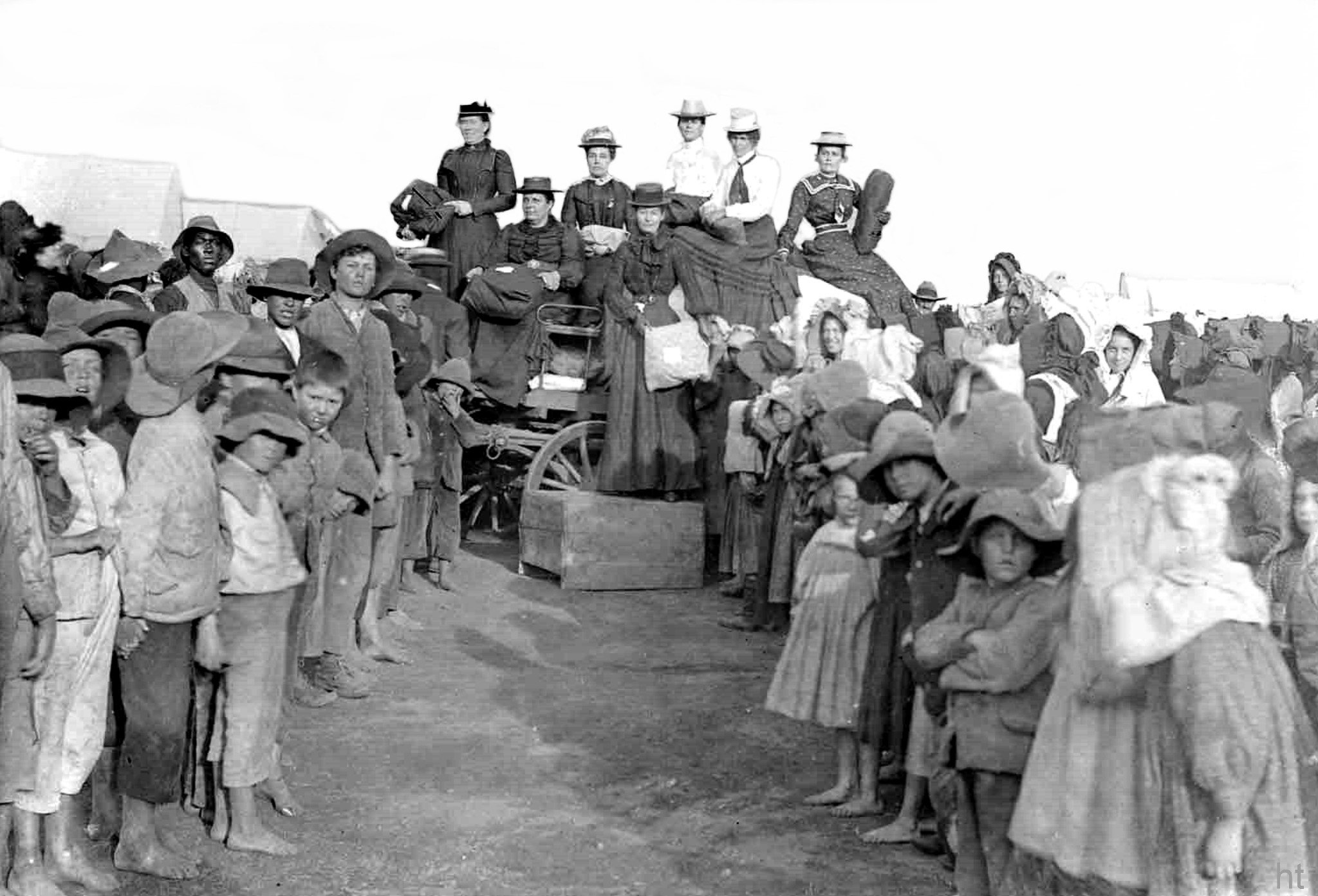 Раздача одежды в концентрационном лагере в Крюгерсдорпе.
