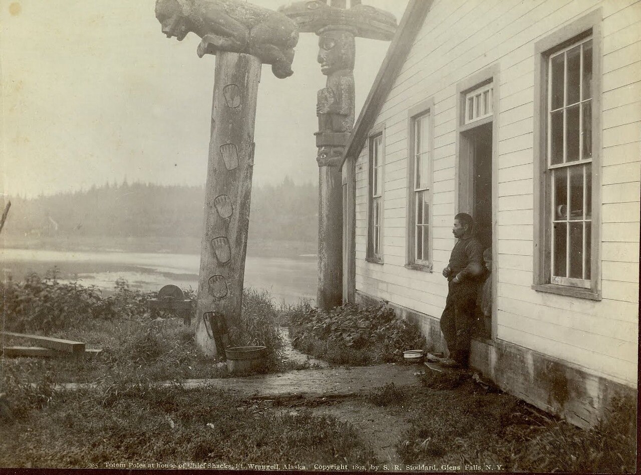 1892 год. Тотемы возле дома вождя Шейка в деревне Каачксан.