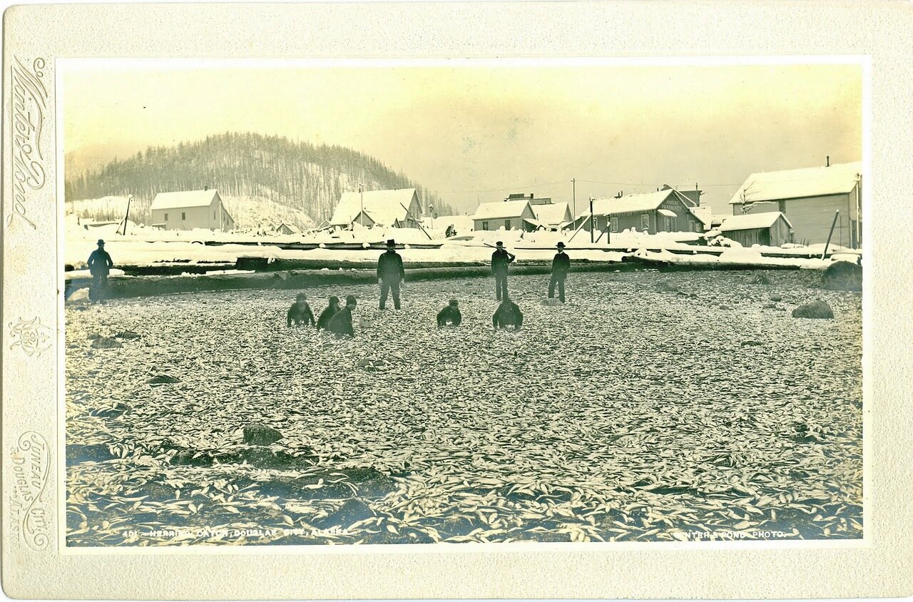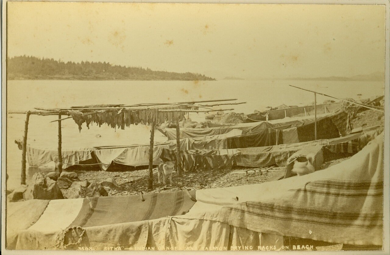 1886 год. Ситка. Индейские каноэ и рыба.