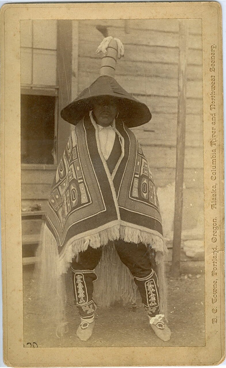 1880 год. Тлинкит в традиционной одежде.