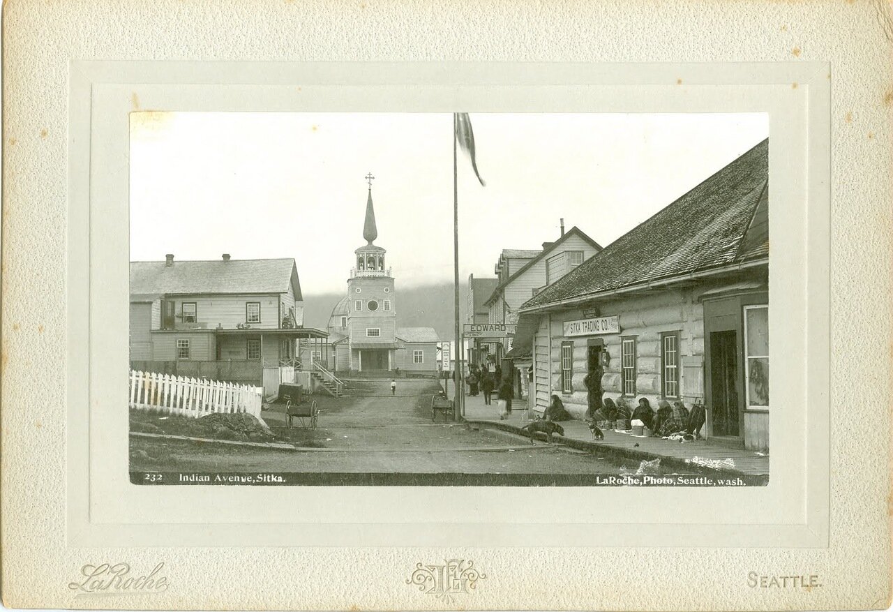1898 год. Главная улица Ситки и тлинкитки, продающие корзины.