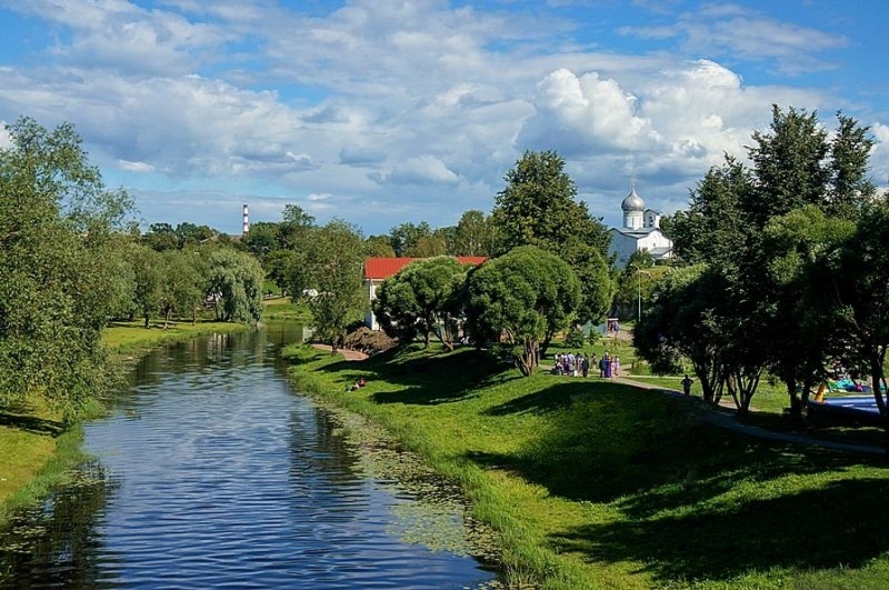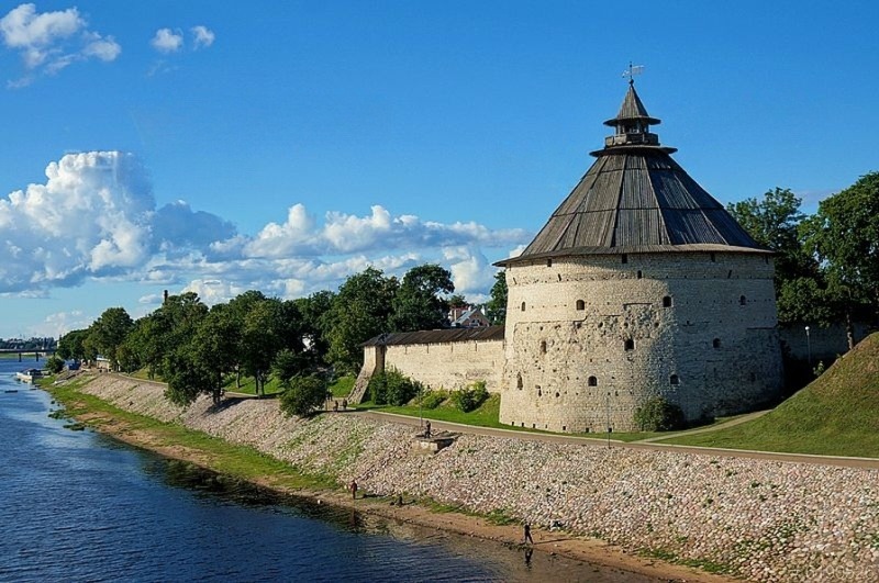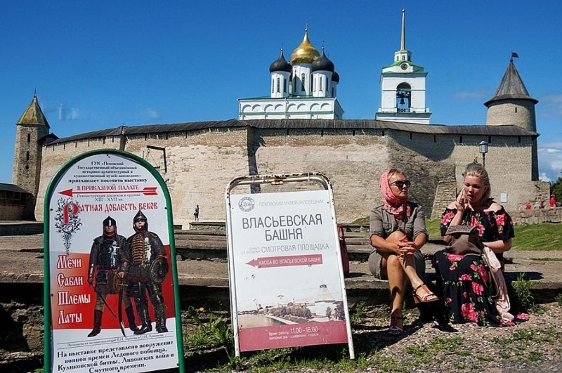 Церковь Старое Вознесение и церковь Рождества Богородицы (справа), в которой находится Псковский планетарий.