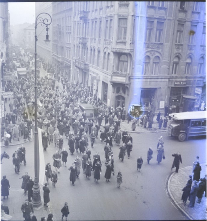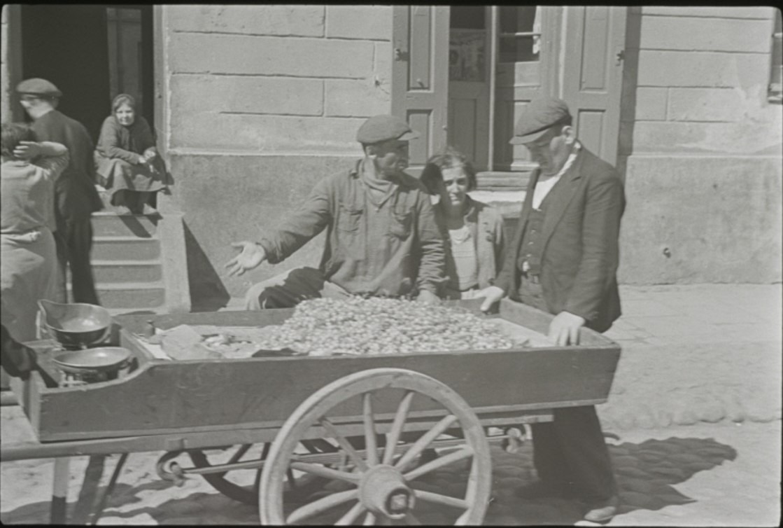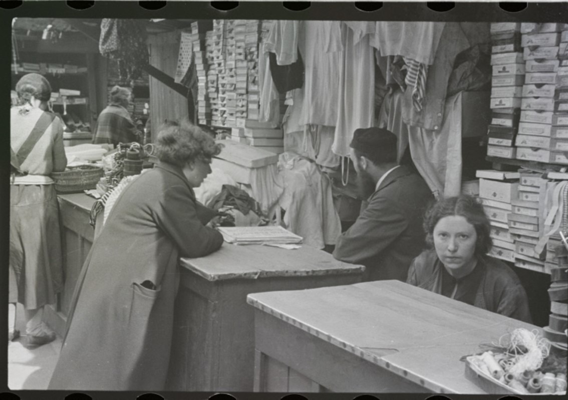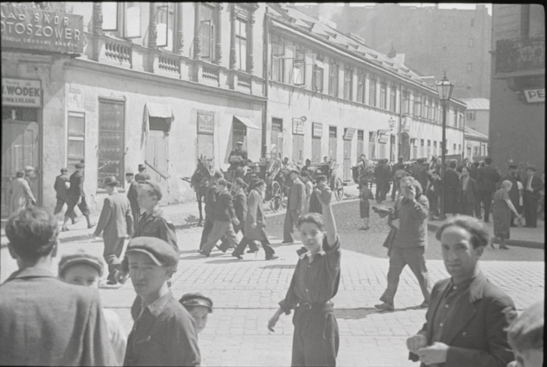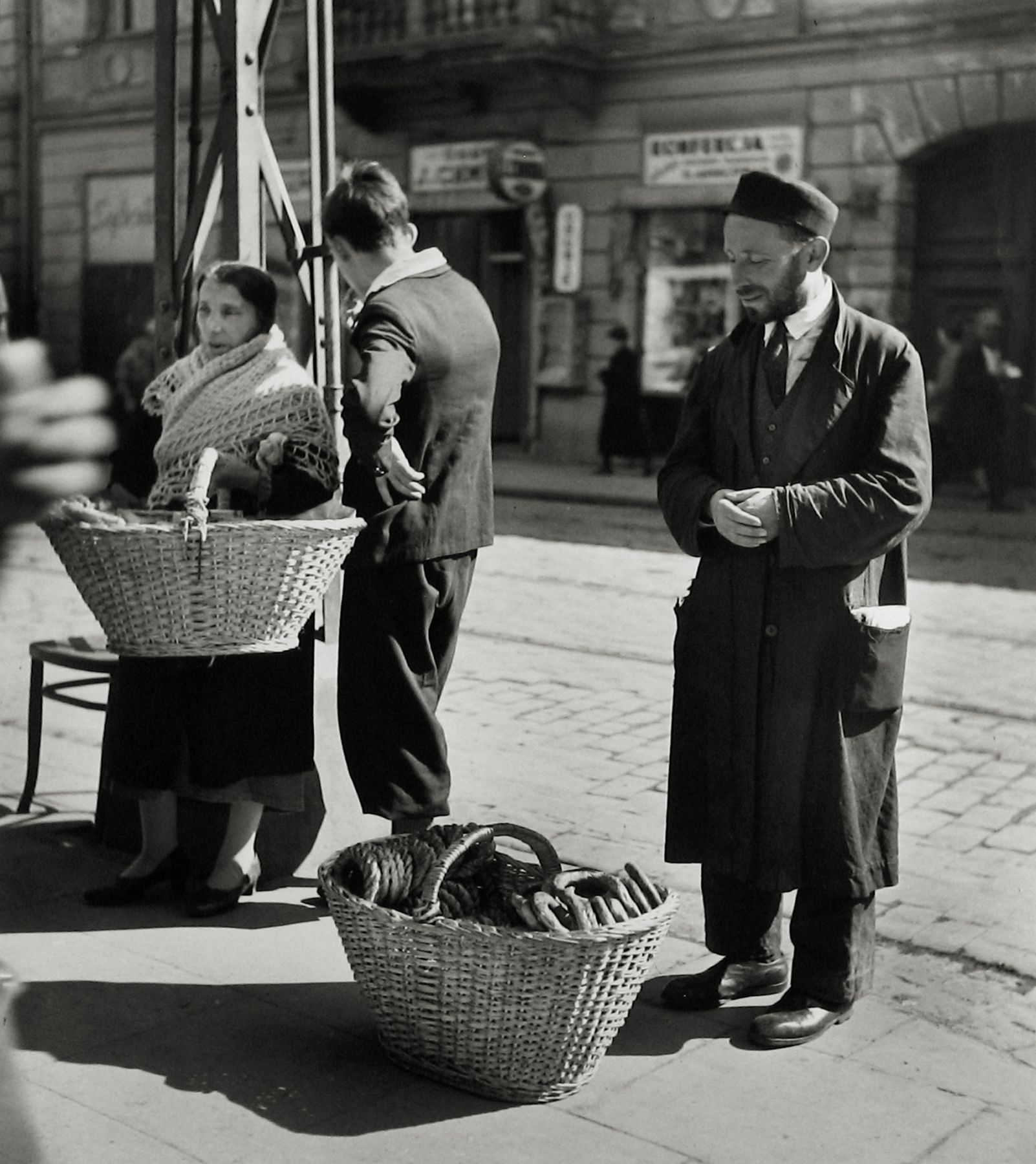 Переполненная улица в еврейском районе Варшавы в шабат, когда все магазины закрыты.