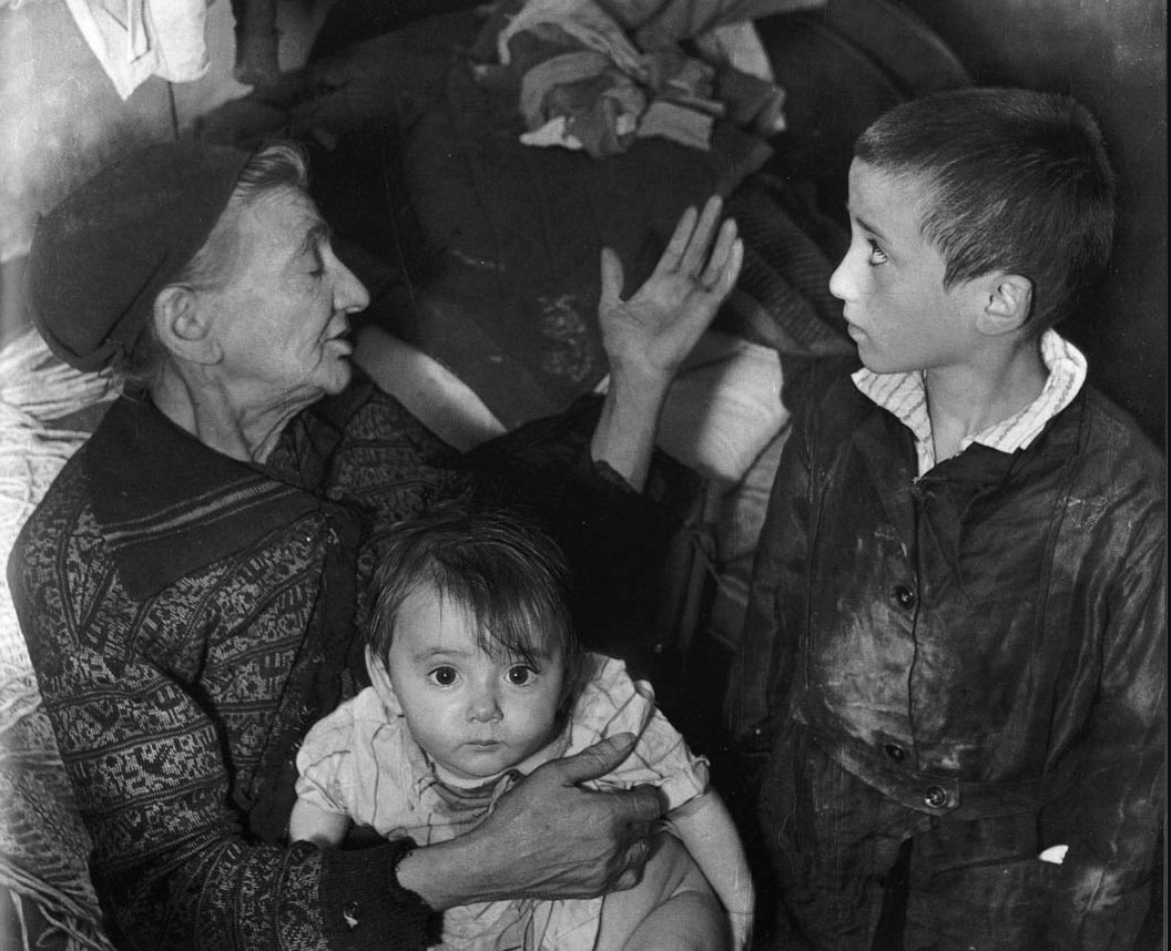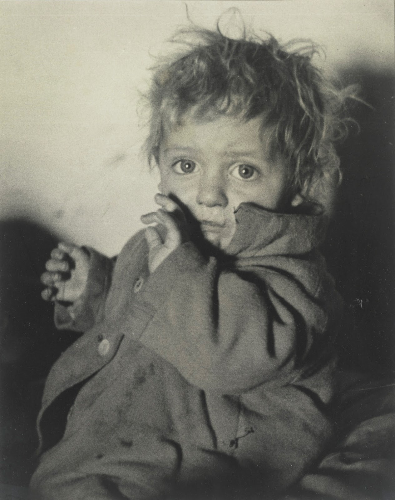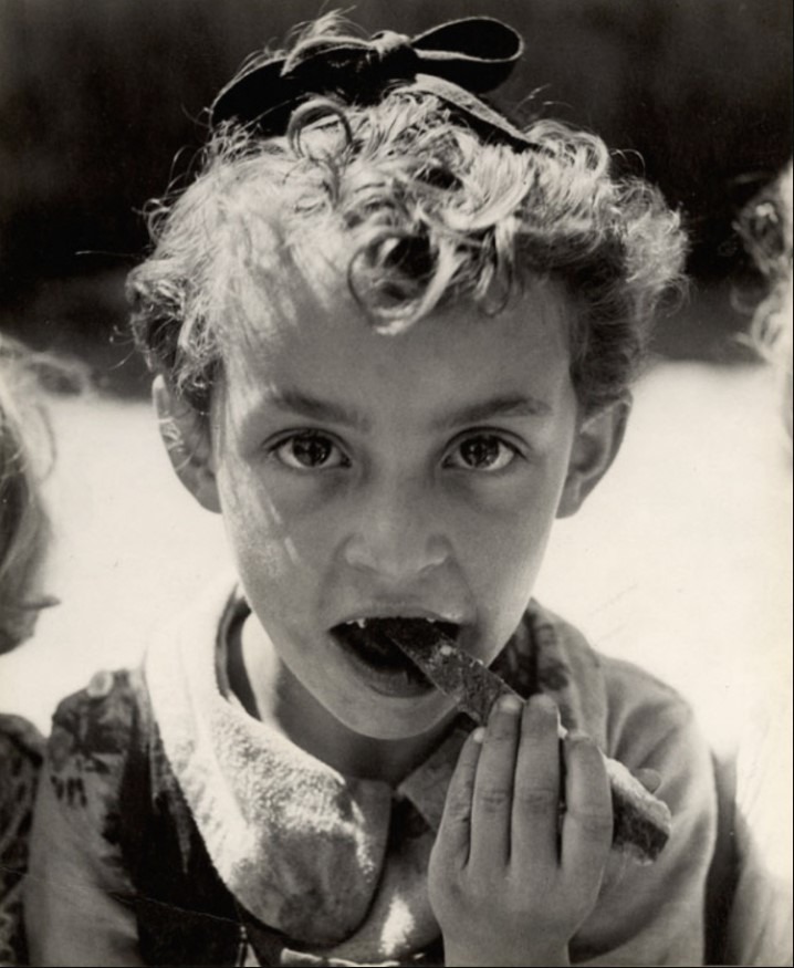 Голодный ребенок грызет корку хлеба в летнем лагере ОЗЗ (Общество по охране здоровья еврейского населения) в Отвоке.