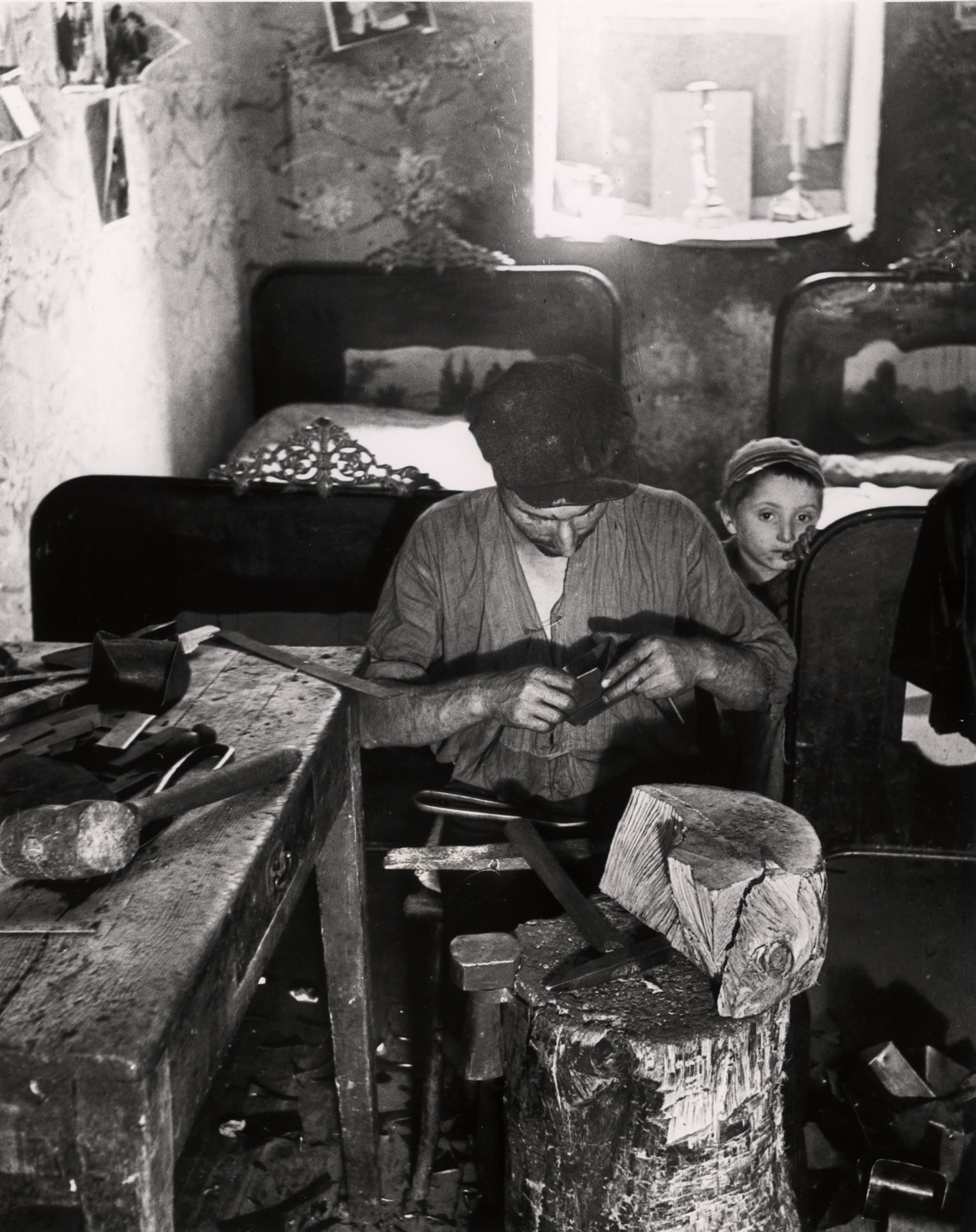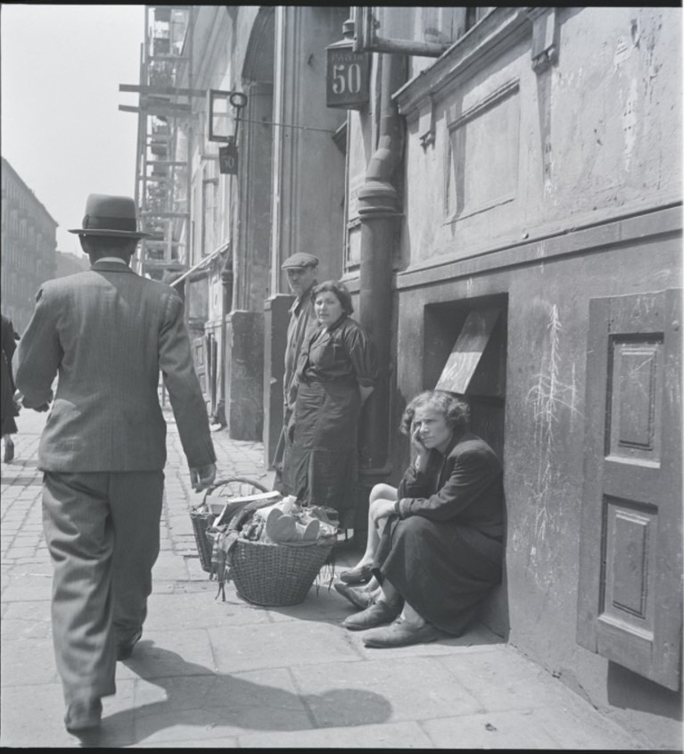 Входит отец, его лицо выглядит усталым. Будет ли еда сегодня? Улица Крохмальна, Варшава.