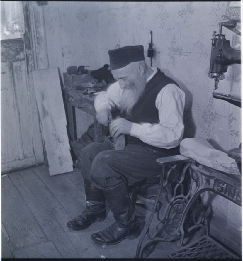 Еврей выглядывает через железную дверь во время антисемитского погрома.