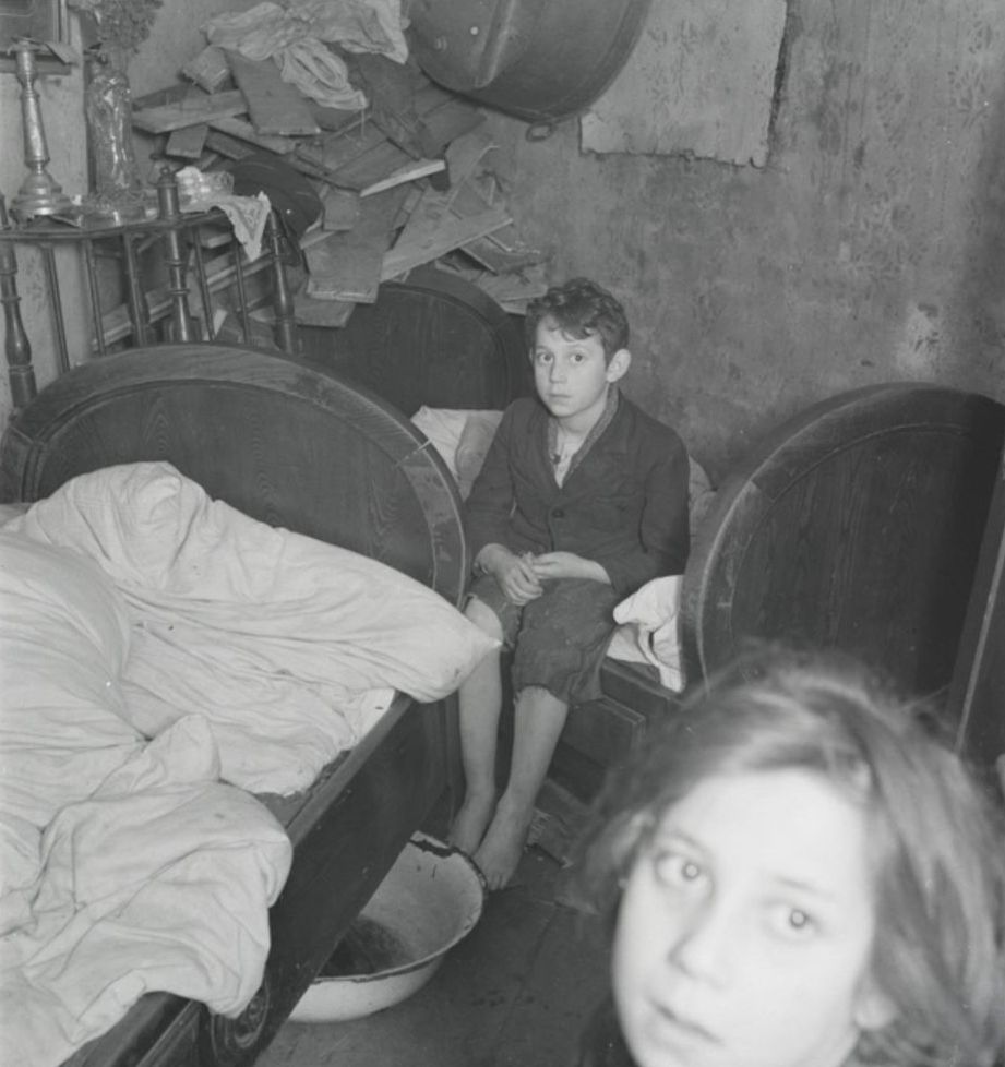 Мальчик в подвальном помещении, ул. Крохмальна, Варшава.