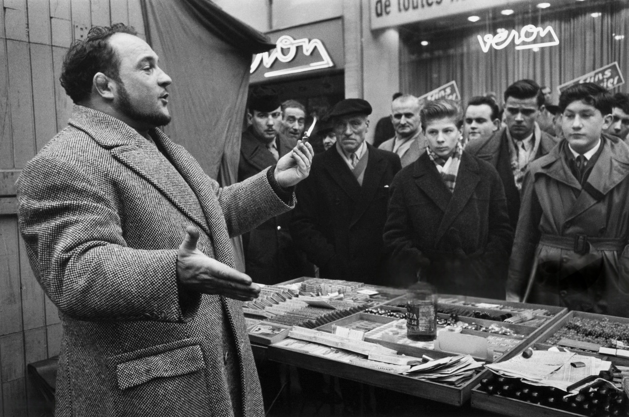 1956 год. Бродячий продавец зажигалок на бульварах Парижа.