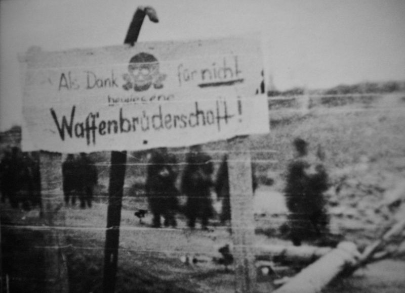 Немецкий плакат, обращенный к финнам во время Лапландской войны. Ироничная надпись на плакате: «Als dank bewiesene für nicht Waffenbrüderschaft !» («Благодарим за доказанное отсутствие боевого товарищества!«).