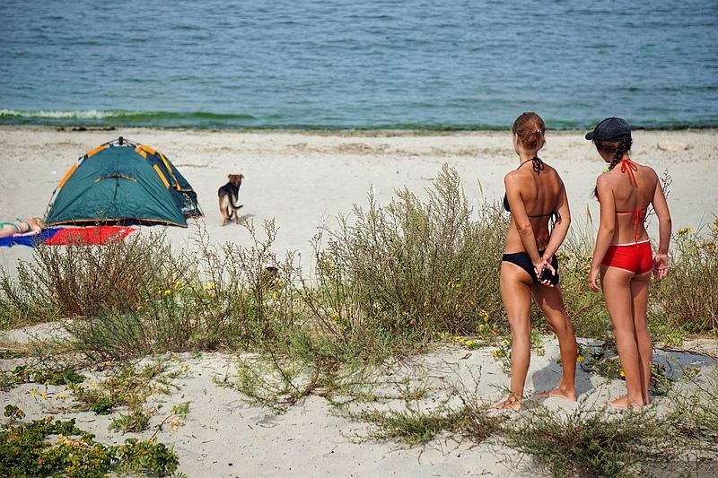 Побережье Балтийского моря. Отдыхающие на пляже.
