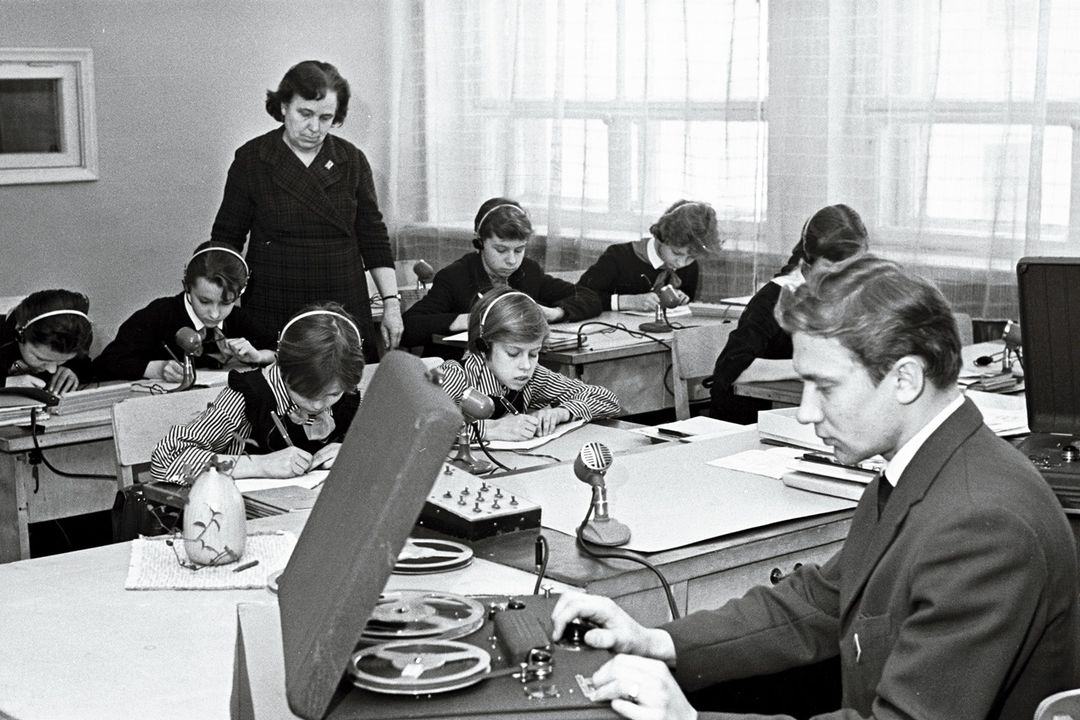 Ученики 6-го класса Таллиннской 7-й средней школы пишут диктант под диктовку с магнитофона. 1963 год.