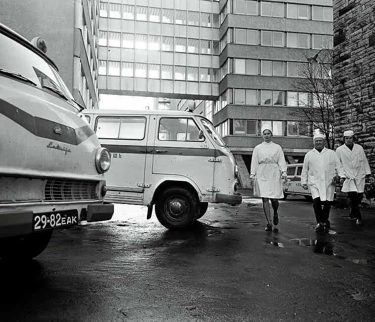 Седьмая бригада Таллиннской городской станции скорой помощи перед выездом на вызов / 1973 год.
