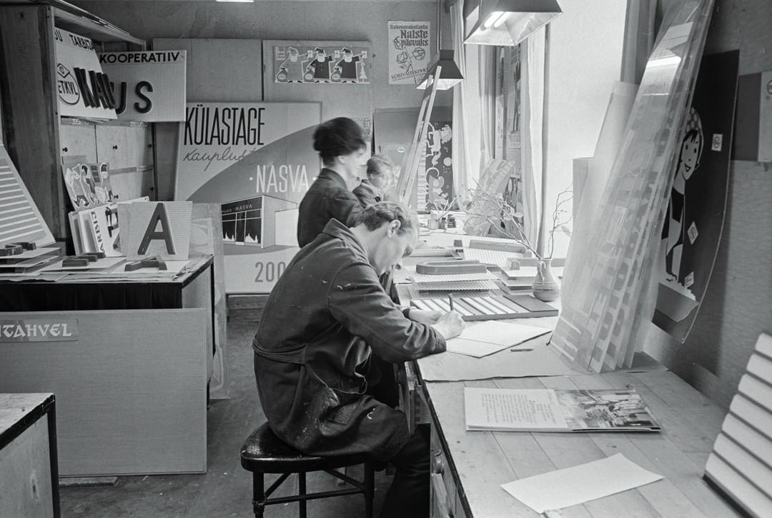 Рекламщики за работой в мастерской декора управления коммерческой рекламы / 1965 год.
