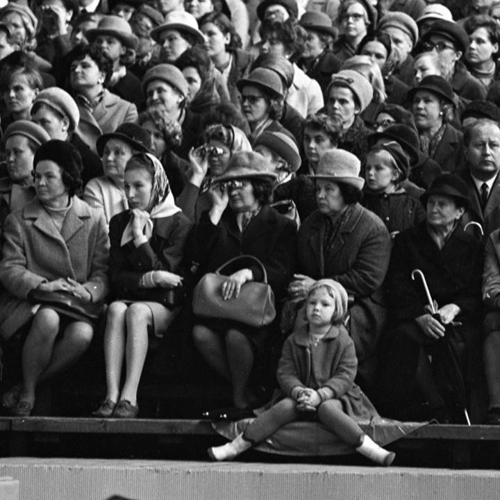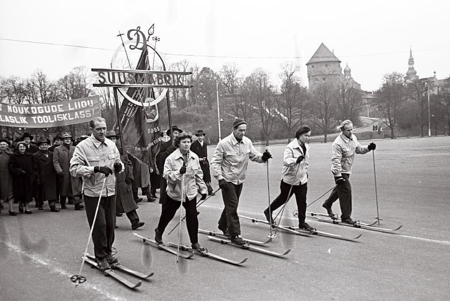 Так работники Таллинской лыжной фабрики вышли на октябрьскую демонстрацию 1958 года.