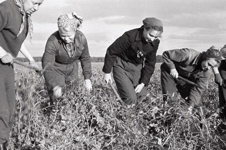 Выпускной курс Таллиннской педагогического вуза в колхозе Кунгла во время осенней уборки гороха / 1956 год.