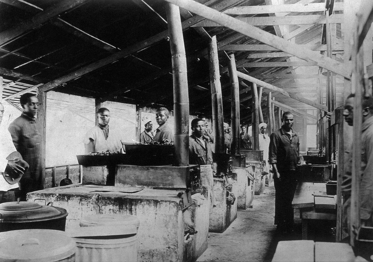 1918 год. Группа негров докеров в своей столовой.