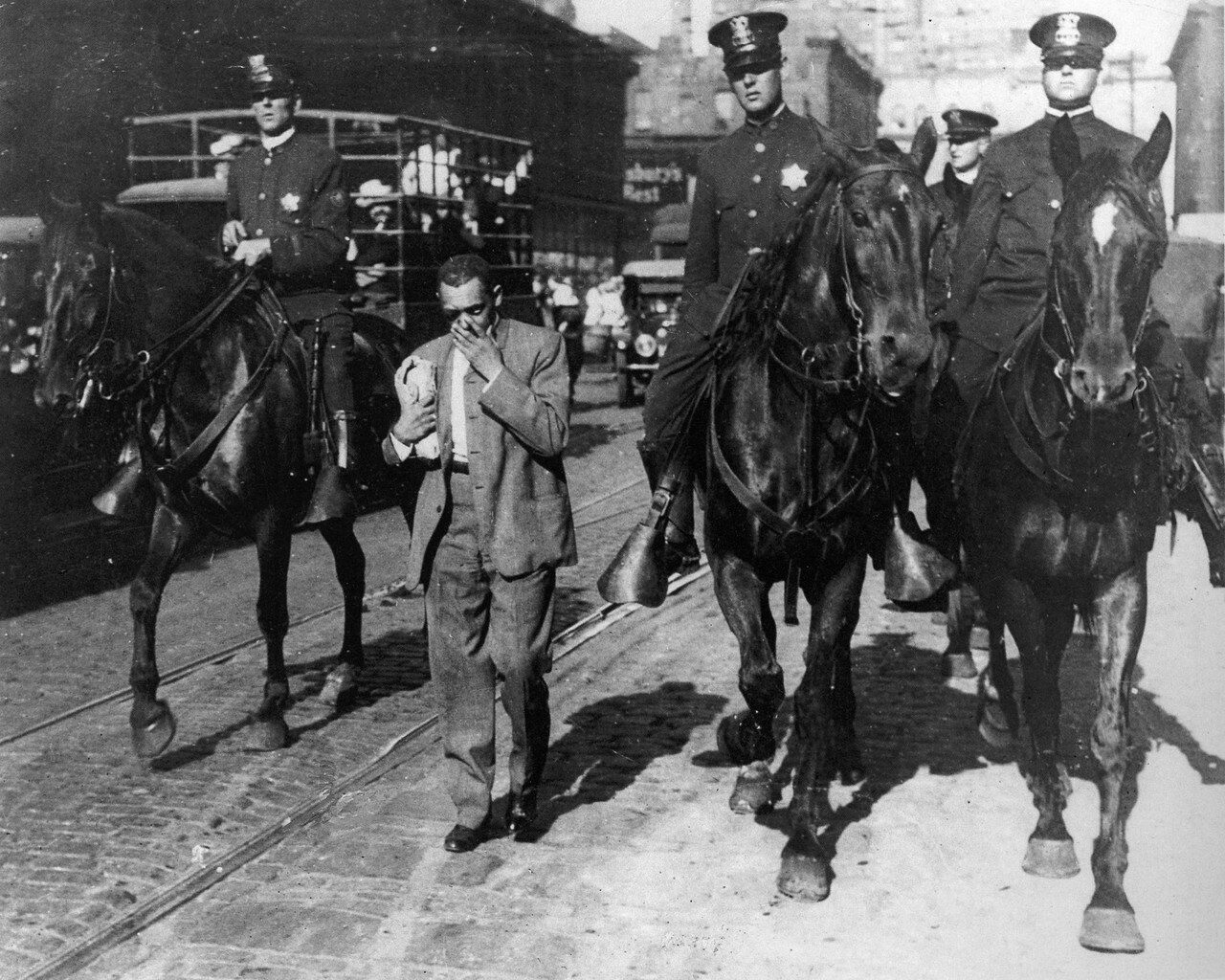 1921 год. 1 июня. Захваченные негры на пути к Конференц-залу во время расового бунта в Талсе, Оклахома.