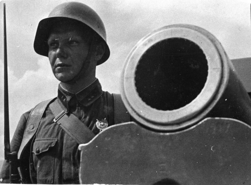 Расчет советской 76-мм дивизионной пушки на позиции во время боев у озера Хасан.