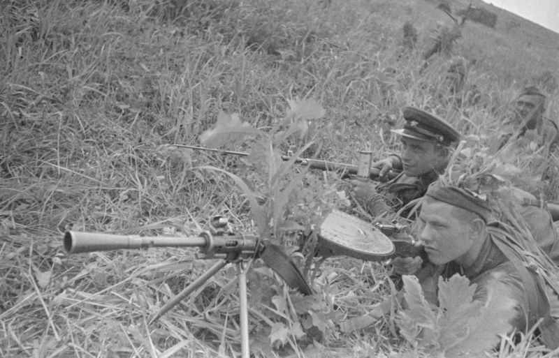 Расчет пулемета ДП-27 младшего командира А.В. Гальянова во время боев у озера Хасан.