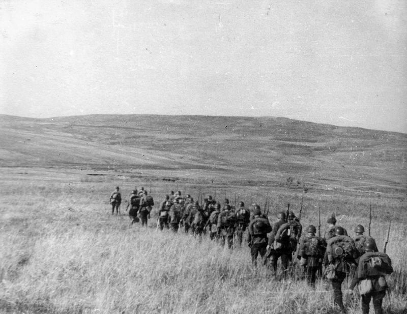 Пехотное подразделение РККА на марше в районе озера Хасан.