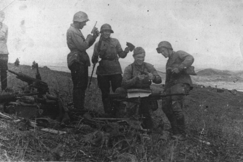 Советские пограничники на сопке Заозерная у озера Хасан.